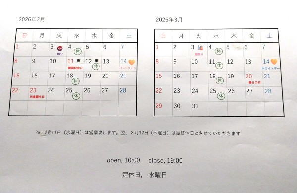 翌、2月12日(木曜日)は振替休日とさせていただきます